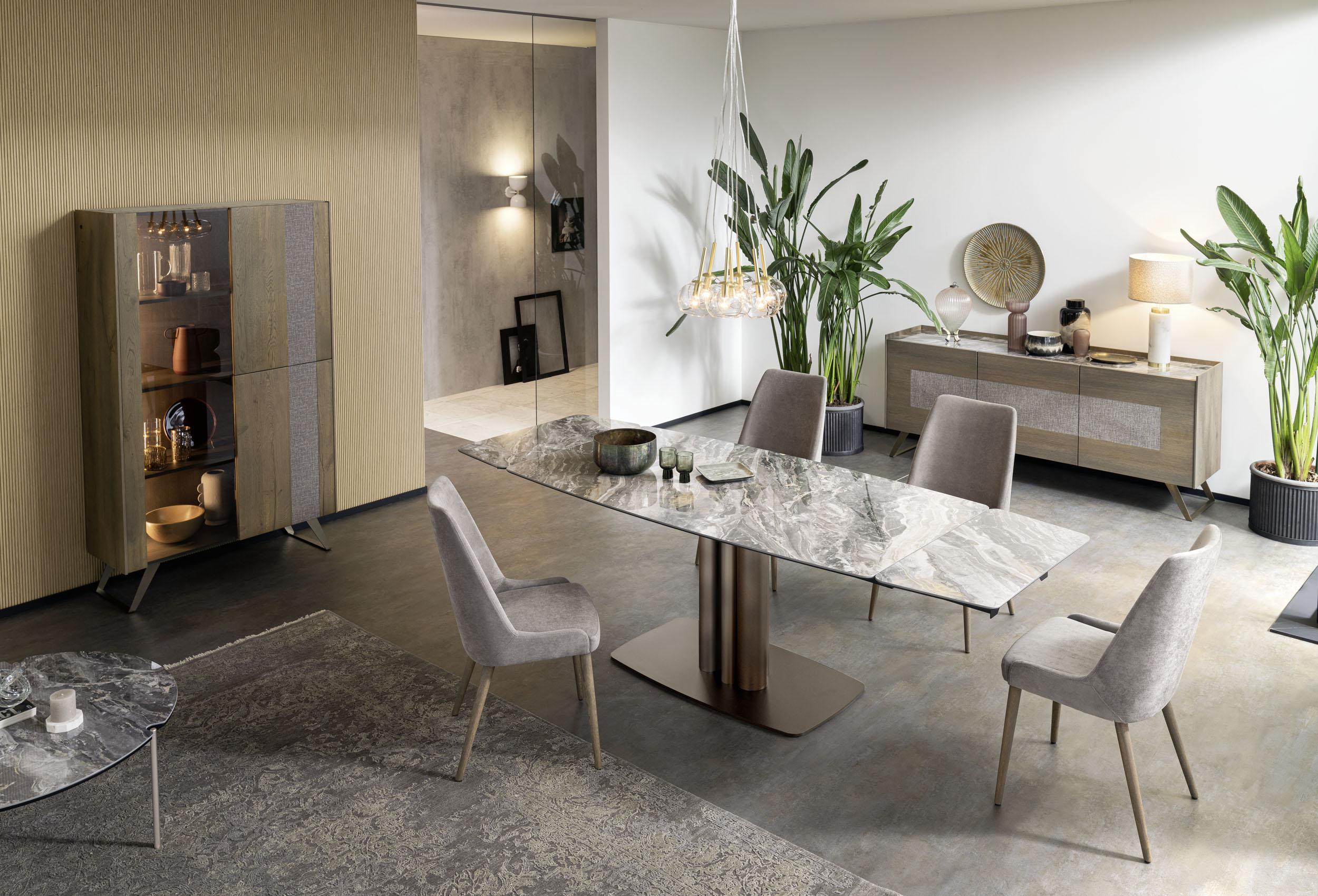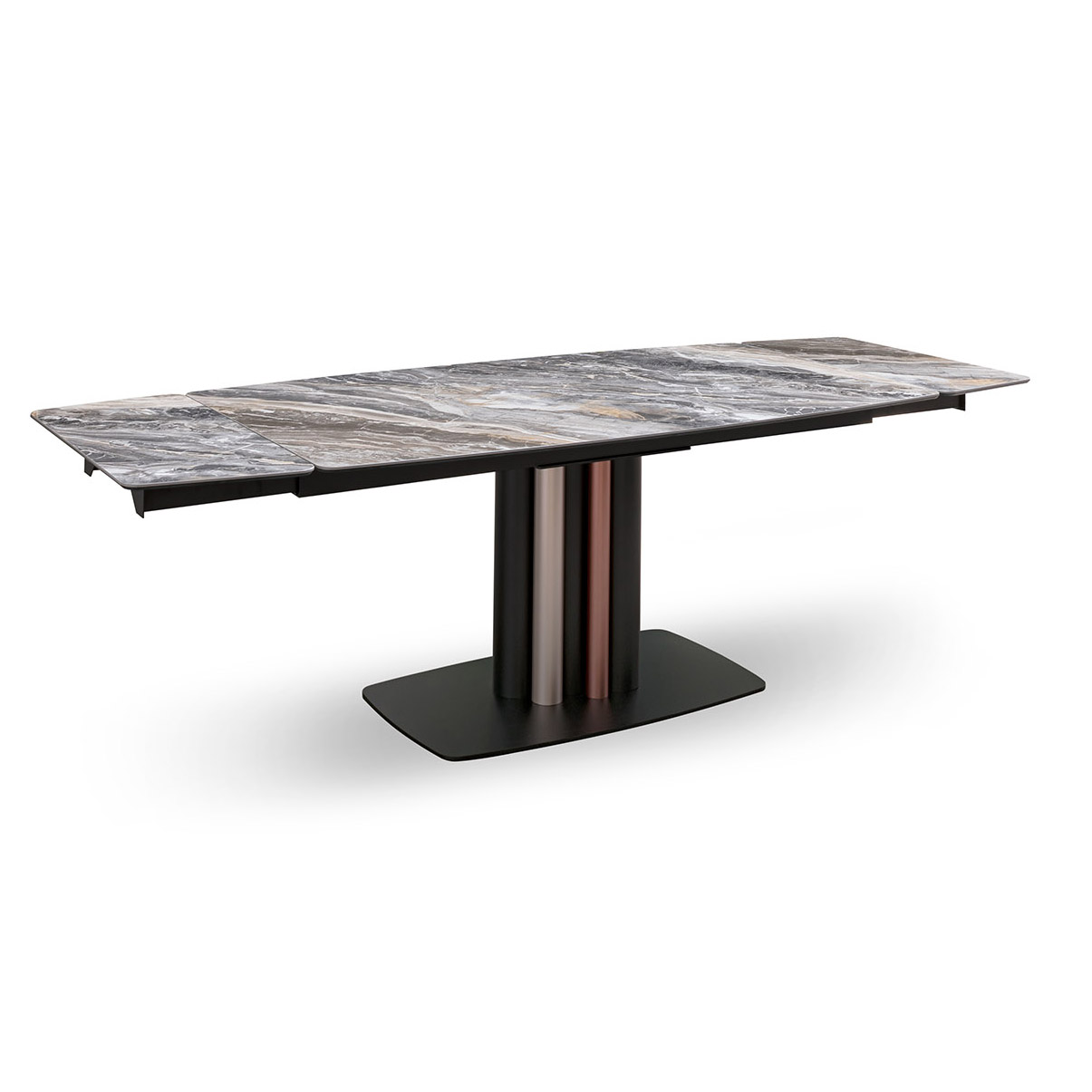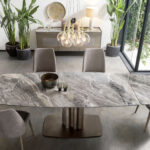 Der Tisch Cannes ist das Ergebnis der Bleistiftarbeit des Altacorte-Stilzentrums. Trotz der geringen Größe des Sockels ist der Tisch Cannes unerschrocken und imposant. Er ist an den essentiellen geometrischen Linien des Metallsockels zu erkennen, bereichert durch ein raffiniertes Orgelpfeifenmotiv, das mit gebürsteten oder handlackierten Oberflächen individuell gestaltet werden kann. Der stabile Träger schafft einen ausgewogenen und originellen Kontrast sowohl zu Massivholz- als auch zu Keramikplatten. Der Effekt ist eine minimalistische Struktur, die die außergewöhnliche Schönheit der Materialien und die für Made in Italy-Produkte typische fachmännische Handwerkskunst hervorhebt.