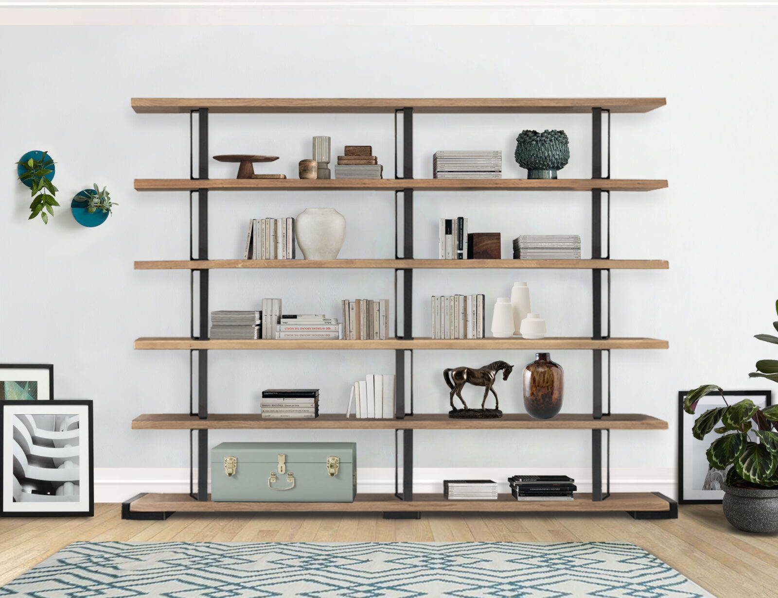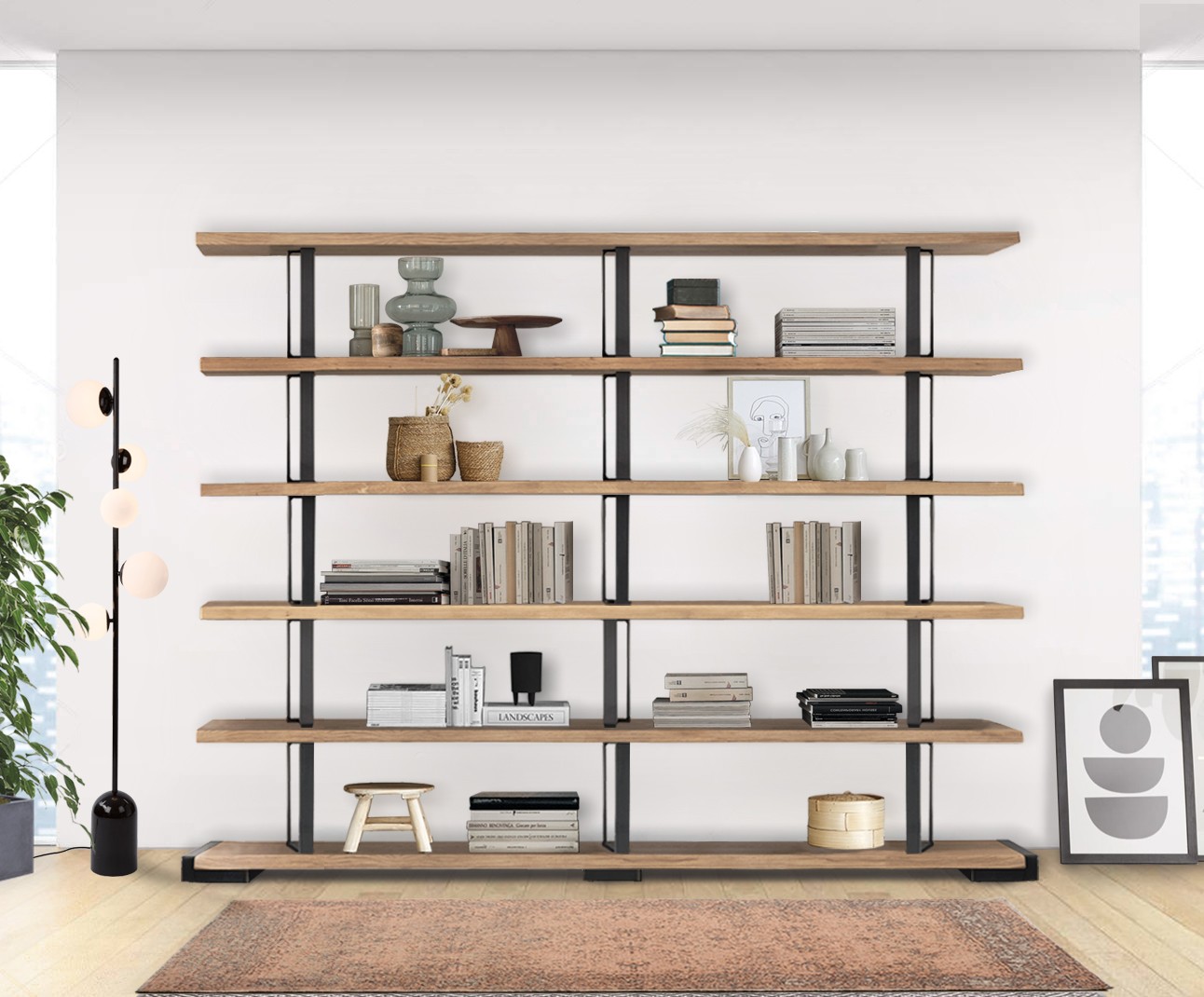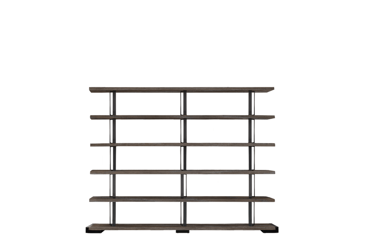 Nicht veränderbar Regalsystem aus massivem Eichenholz mit unregelmäßigen Kanten und Strukturstützen aus Eisen mit einem Industry-chic Design. Findest du nicht die richtige Kombination für dich? Bei unseren Fachhändler kann du es nach deinen Bedürfnissen personalisieren.