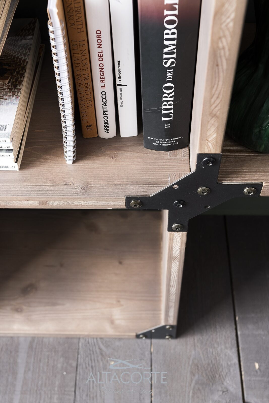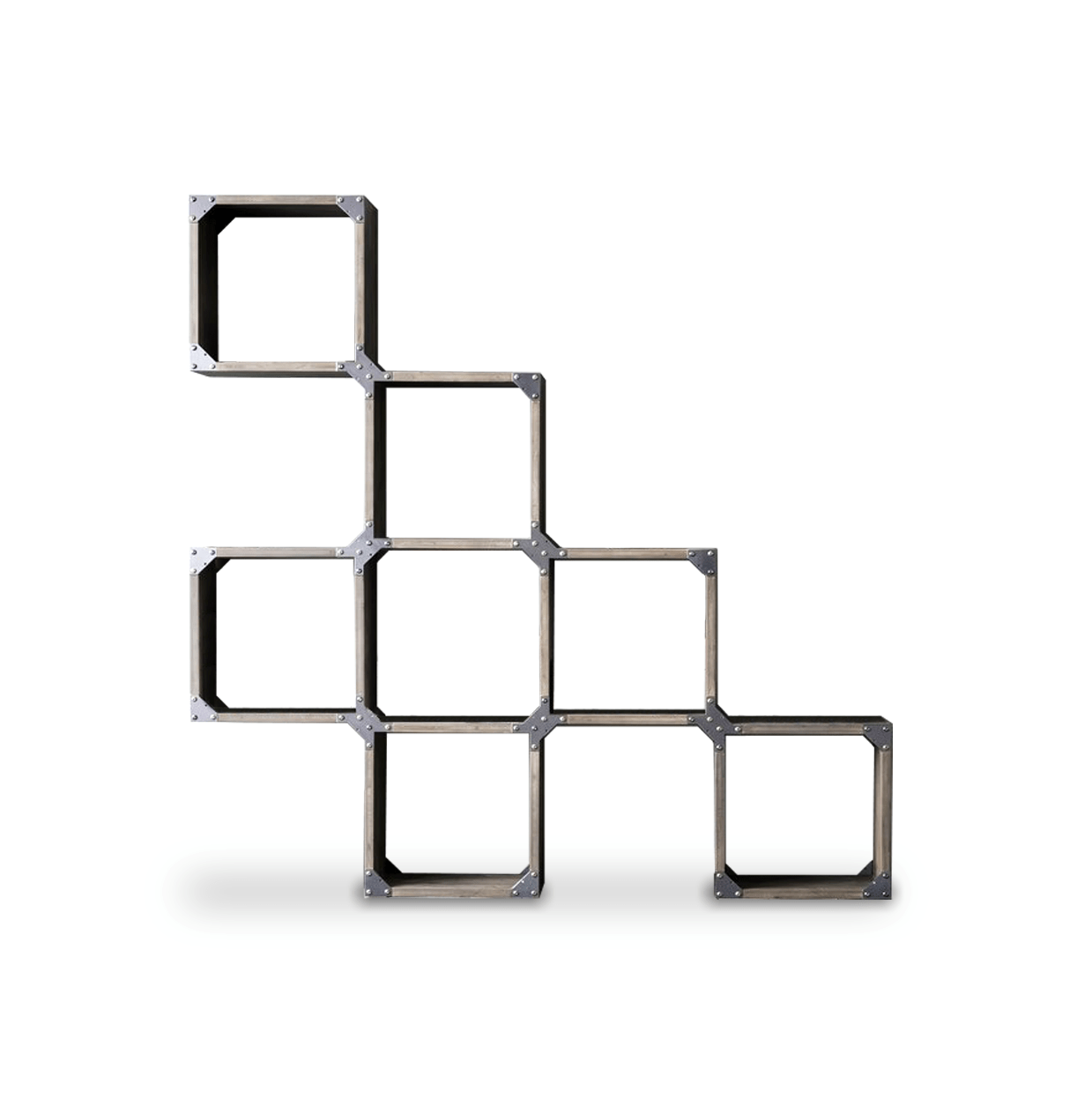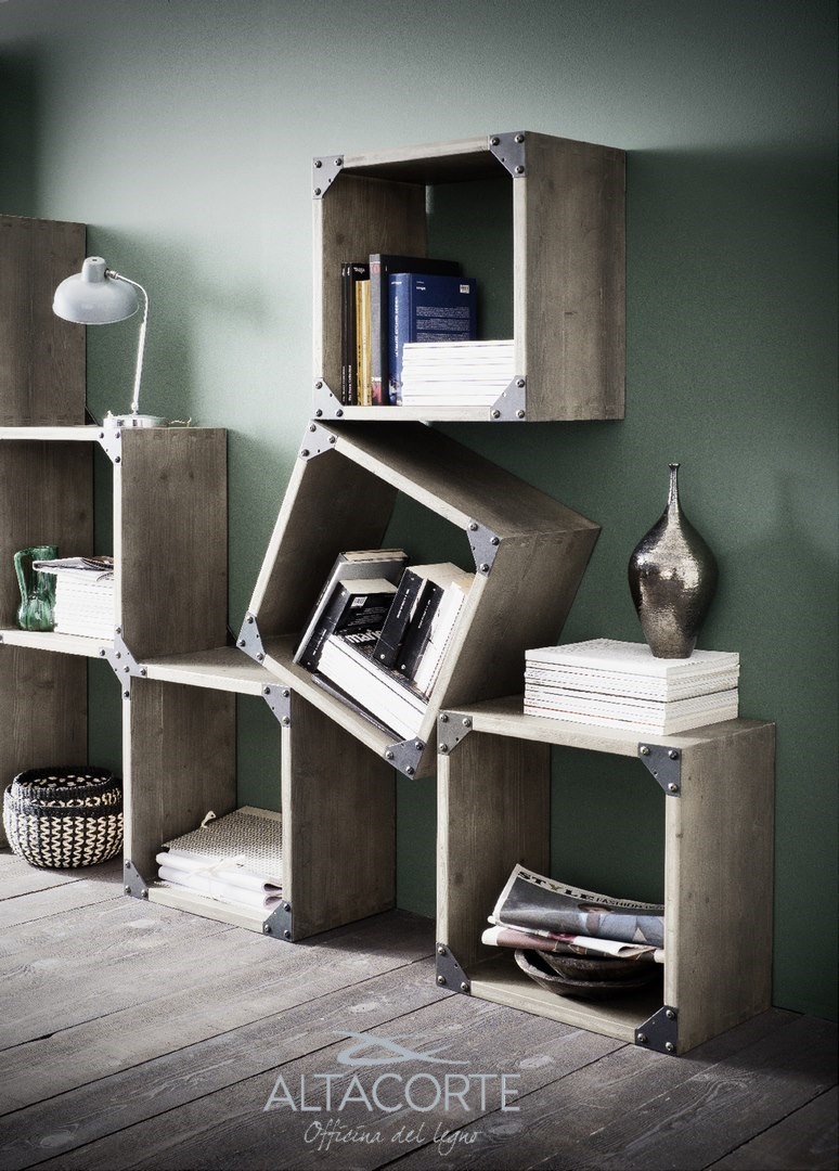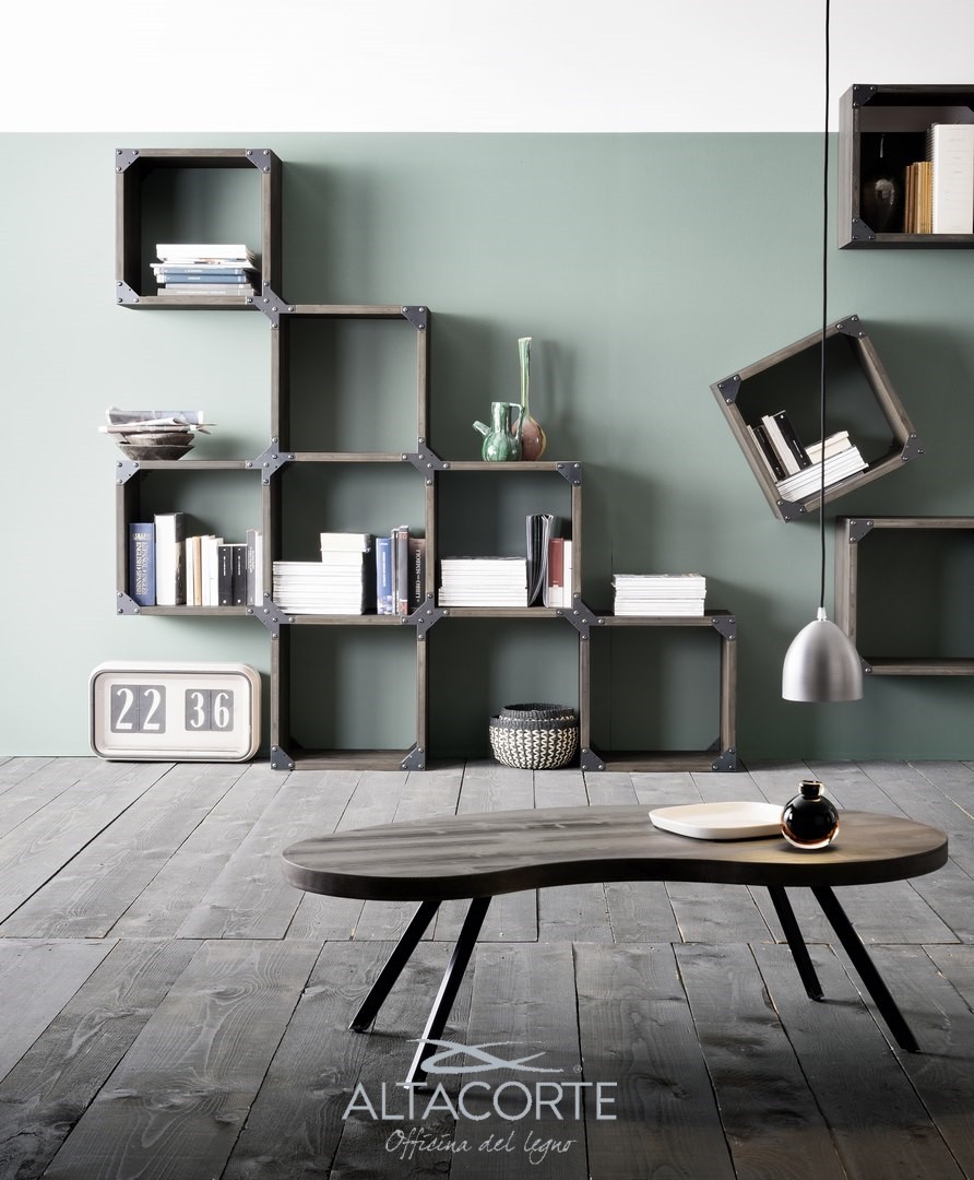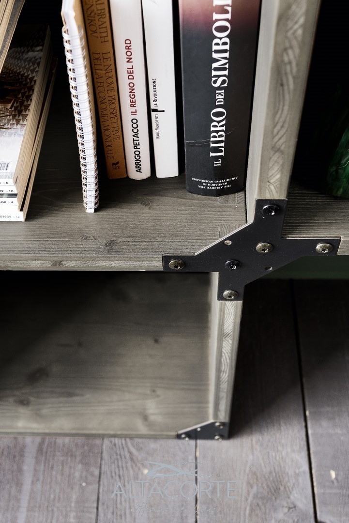 Nicht veränderbar Regalsystem aus massivem Eichenholz oder Tannenholz mit unregelmäßigen Kanten und Strukturstützen aus Eisen mit einem Industry-chic Design. Findest du nicht die richtige Kombination für dich? Bei unseren Fachhändler kann du es nach deinen Bedürfnissen personalisieren.