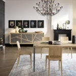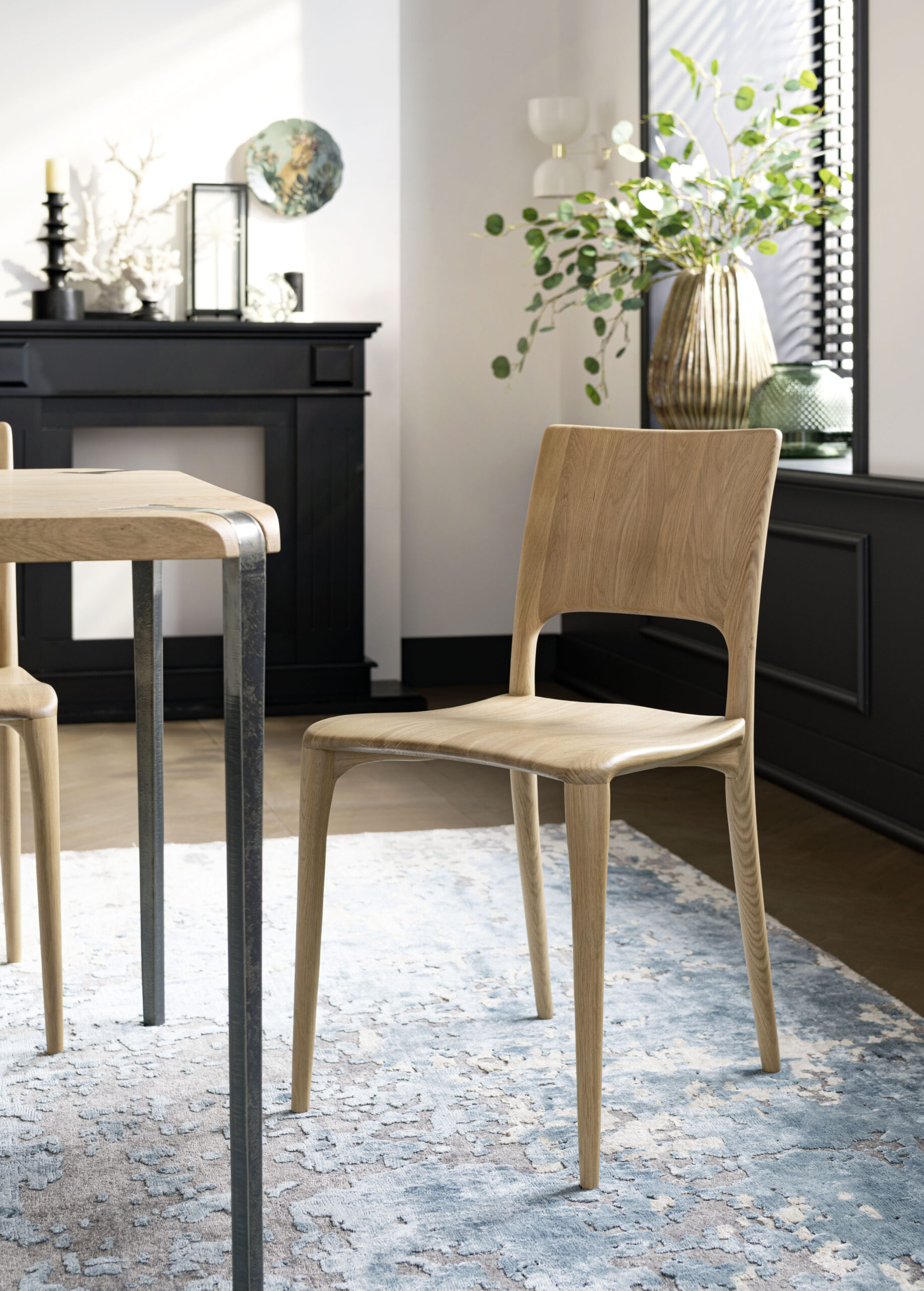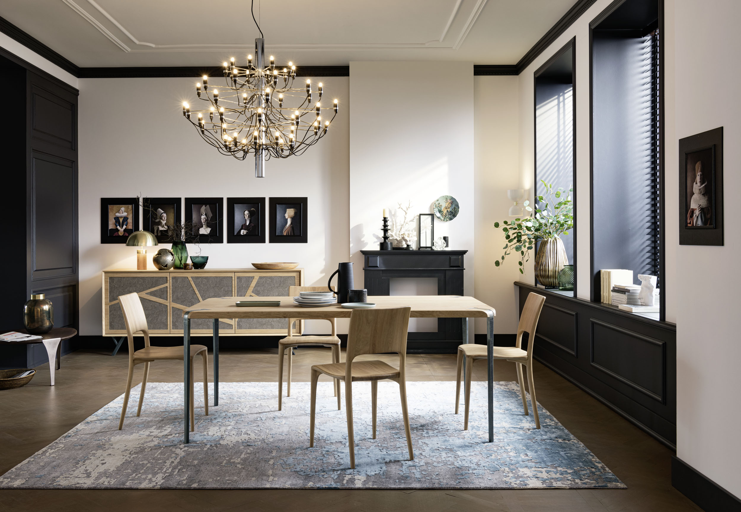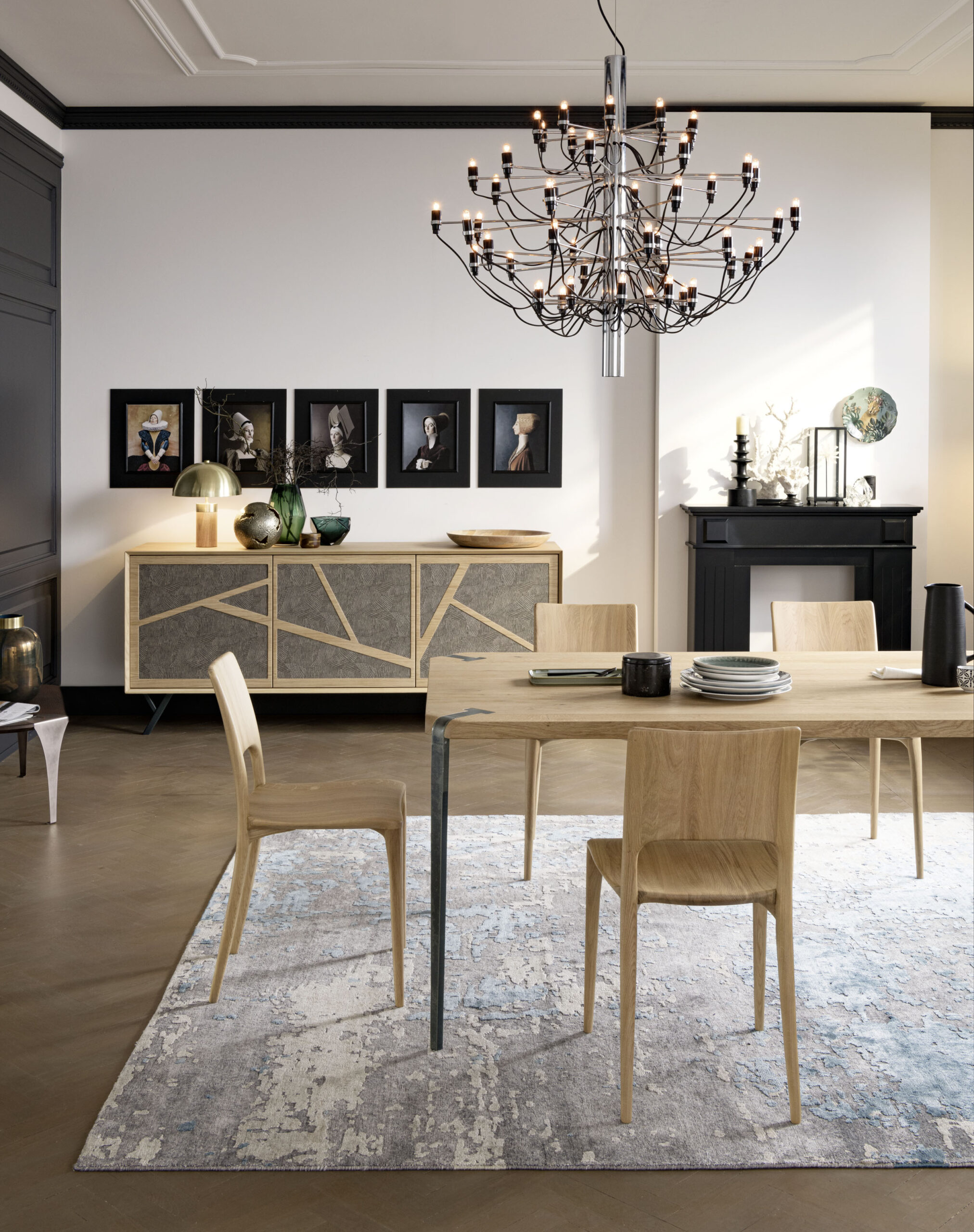 Der Tisch Lio ist das Ergebnis des Bleistifts von Altacorte. Seine schlanken Linien geben dem Raum und der Seele des Betrachters ein Gefühl der Leichtigkeit. Die Beine aus Eisen werden mittels Laserschneiden extrudiert. Gerade das Eisen, ein Material mit einem hohen spezifischen Gewicht, verleiht Stabilität und Festigkeit. Die Platte aus massiver Eiche oder Nussbaum setzt sich als Ikone des modernen Wohnbereichs durch.