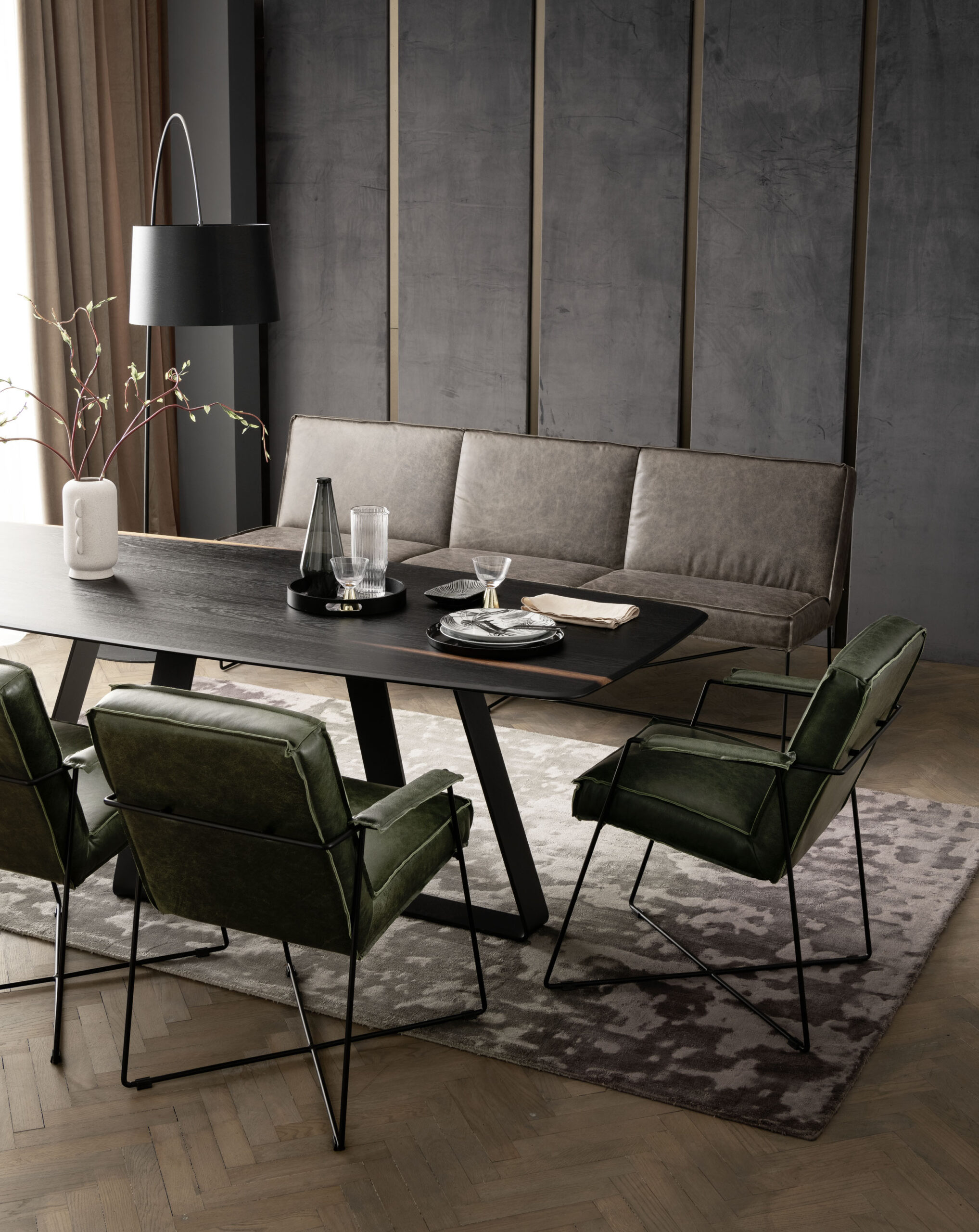 Struktur aus Eichenholz, Sitzfläche aus Samt oder Mikrofaser