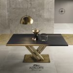 Der Tisch Athena ist das Ergebnis jahrelanger Forschung der Designabteilung Altacorte. Mit seinem Doppelbein aus Stahl ist er der Baustil des antiken Griechenlands nachempfunden. Er ist ein spektakulärer Designtisch, der in euren Innenräumen eine Hauptrolle spielen wird.