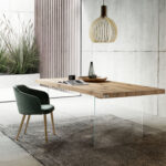 Ein Tisch mit einem zeitlosen Design, außerhalb der Mode, wo die Solidität und das Gewicht des Holzes in der Luft gehalten werden, dank der Anwesenheit von zwei Tischbeine aus ultra-klarem Kristall. Auf diese Weise wirkt die Platte, als ob sie schweben würde. Dieser Tisch wird euren Räumen eine anspruchsvolle Atmosphäre schenken.