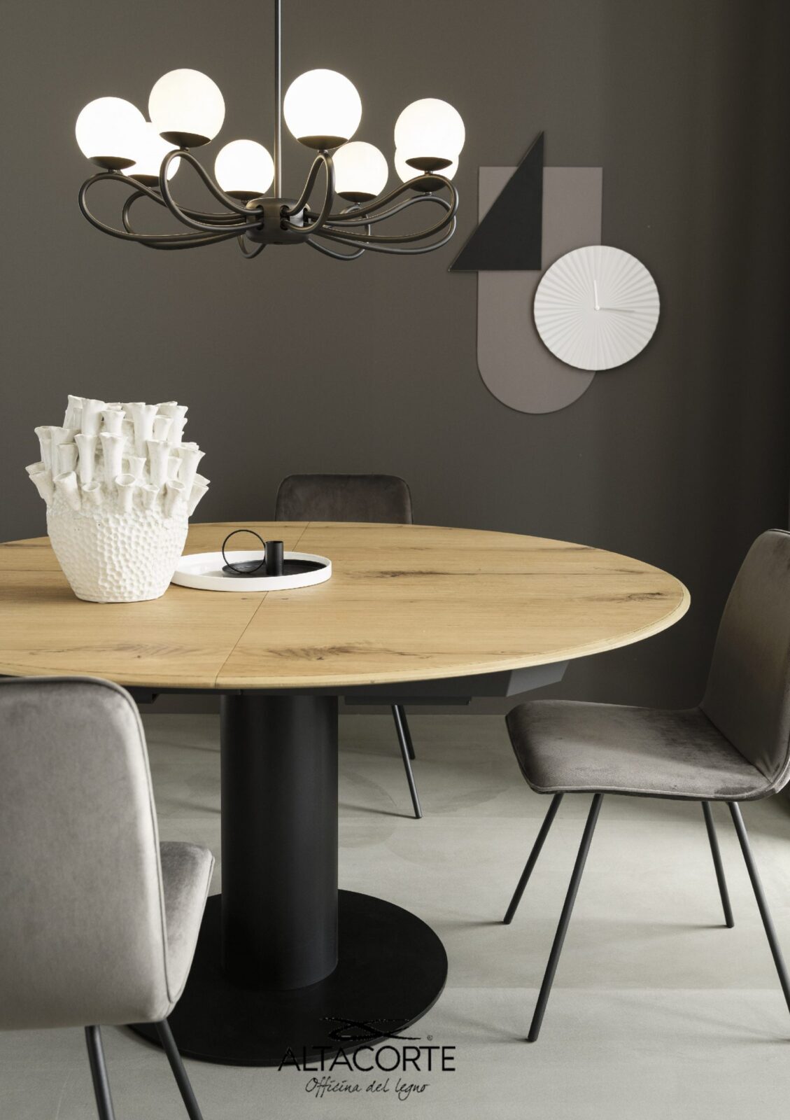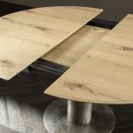 Der Tisch Orby, mit seiner runden Form, ist die perfekte Wiedergabe der Totalität. Seine Form verleiht Ausgewohnheit und Vollständigkeit: ein perfekter Tisch, für wen das Zusammensein beim Essen liebt. Dieses Gefühl wird hervorgehoben, wenn der Tisch verlängert wird, weil er eine ovale Form annimmt.
