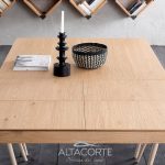 Ein Kennzeichen des Altacorte Stil wird von dem Tisch Santiago vorgestellt. Dieser Tisch aus Eichen- oder Nussbaum hat eine wunderbare Bühnenpräsenz, dank seiner massiven ausziehbaren Platten. Ein zeitloses Design mit einem unvergleichlichen Charakter. Ein Tisch, der manuell unter Anwendung traditioneller Verfahren unserer Handwerker hergestellt wird und der ewig und geeignet für jede Anwendung ist.