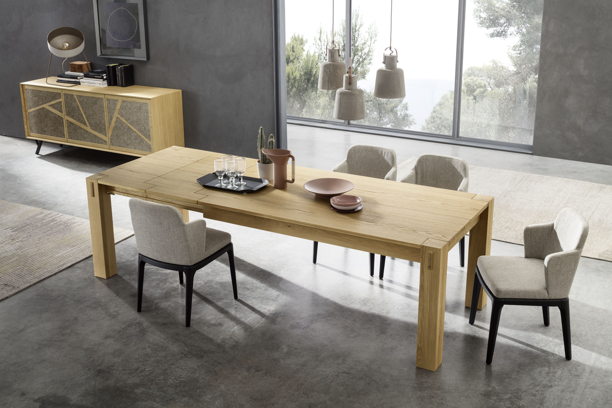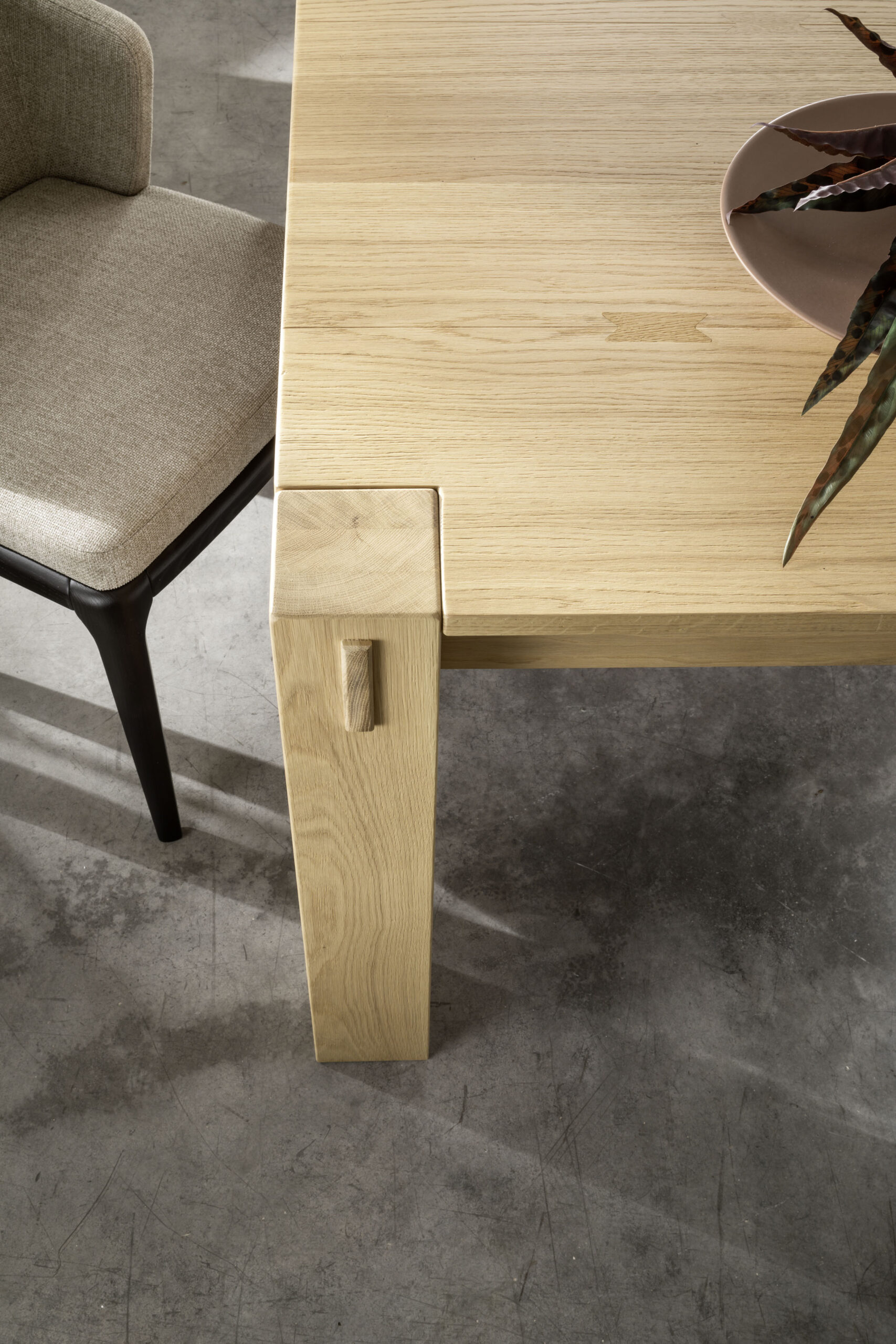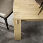 Der David von Altacorte. Ein Tisch mit einem nüchtern zeitlosen nordischen Stil, typisch von dem zeitgenössischen Stil. Die ganze Struktur wird aus massivem Holz realisiert, und es wird mit Einlagen in den Beinen und mit eingelegten Schmetterlingen ausgeschmückt. Der Tisch und die Details wirken einfach perfekt zusammen, und die Perfektion ist nicht nur ein Detail in einem handgemachten Tisch